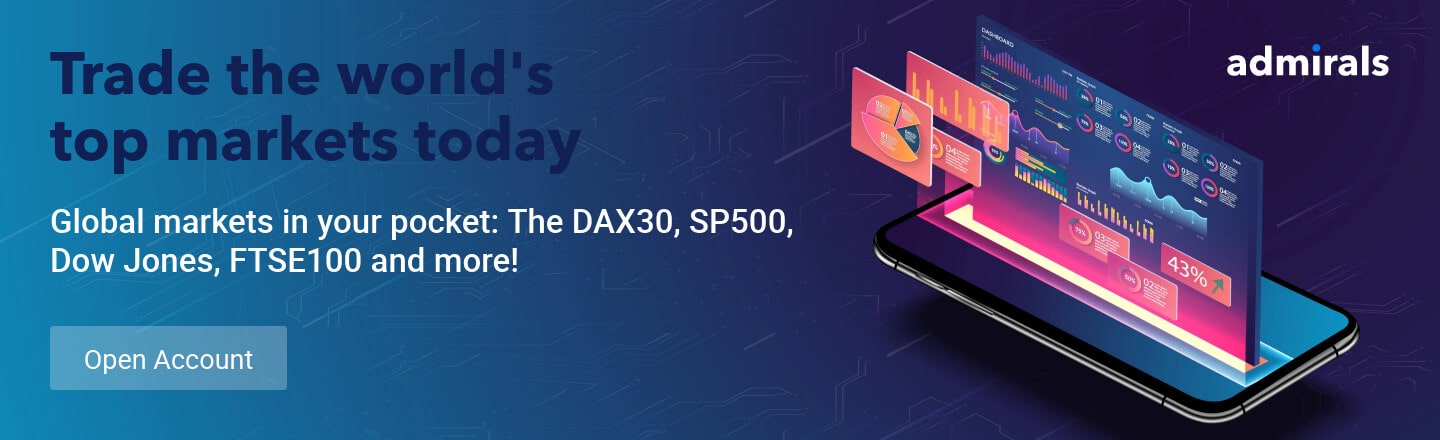 Furthermore, with the Trade.MT5 account from Admiral Markets, you can trade Contracts for Difference (CFDs) on the DAX40, IBEX35, S&P500 and many more instruments. CFDs allow traders to attempt to profit from both rising and falling prices, whilst also benefiting from the use of leverage. Click the banner below to open an account today:Â