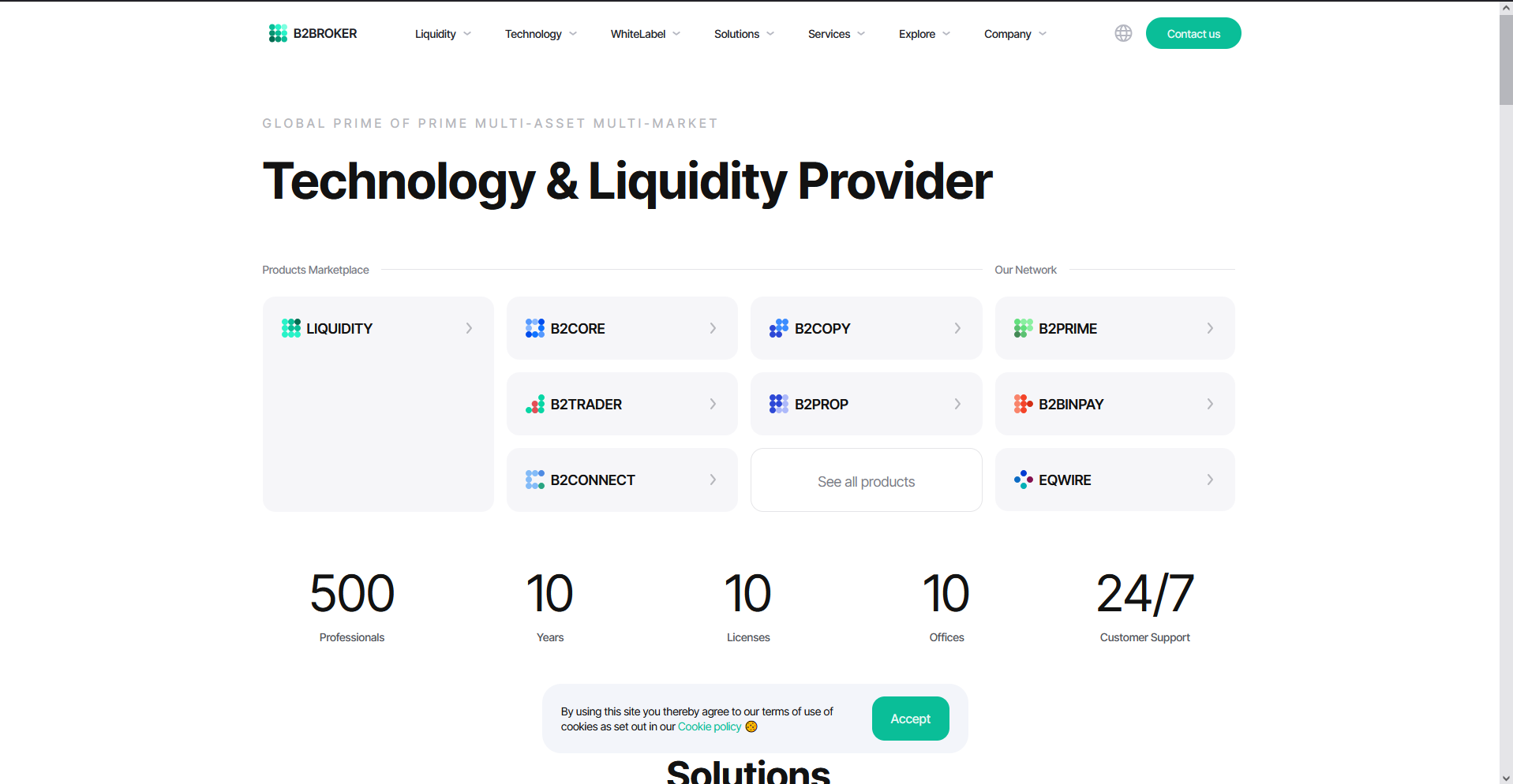 This review will give a detailed information about B2Broker, a well-established liquidity and technology provider catering to forex brokers, exchanges, corporate and institutional clients. The company offers solutions like liquidity aggregation, white-label platforms, and payment gateway integrations designed to simplify operations for businesses in the financial markets.