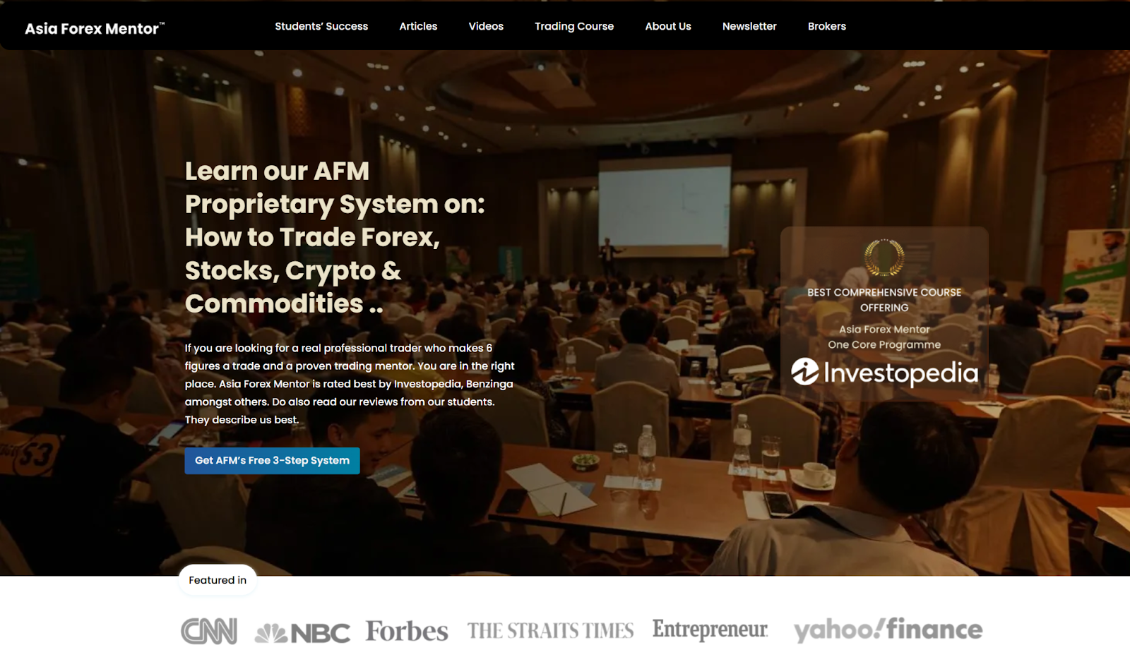 Asia Forex Mentor (AFM) is the ultimate destination for anyone serious about mastering the art of trading Forex, Stocks, Commodities, Crypto, and beyond. Rated the #1 Forex Trading Course in Asia by Investopedia, Benzinga, and other major publications, our proven training system has helped transform complete beginners into 6-figure full-time traders and even fund managers.