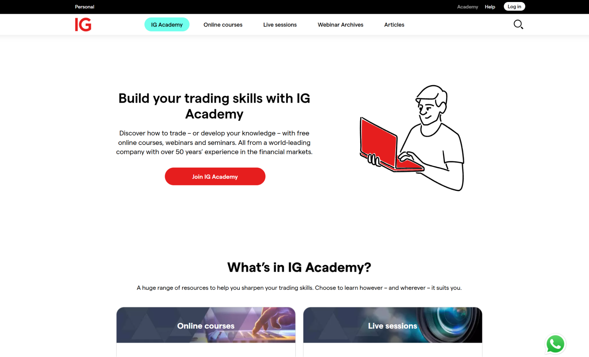 IG Academy provides free online trading courses covering forex, stocks, indices, and more. The platform offers interactive learning with videos, webinars, and in-person seminars in various locations.   Key Features: