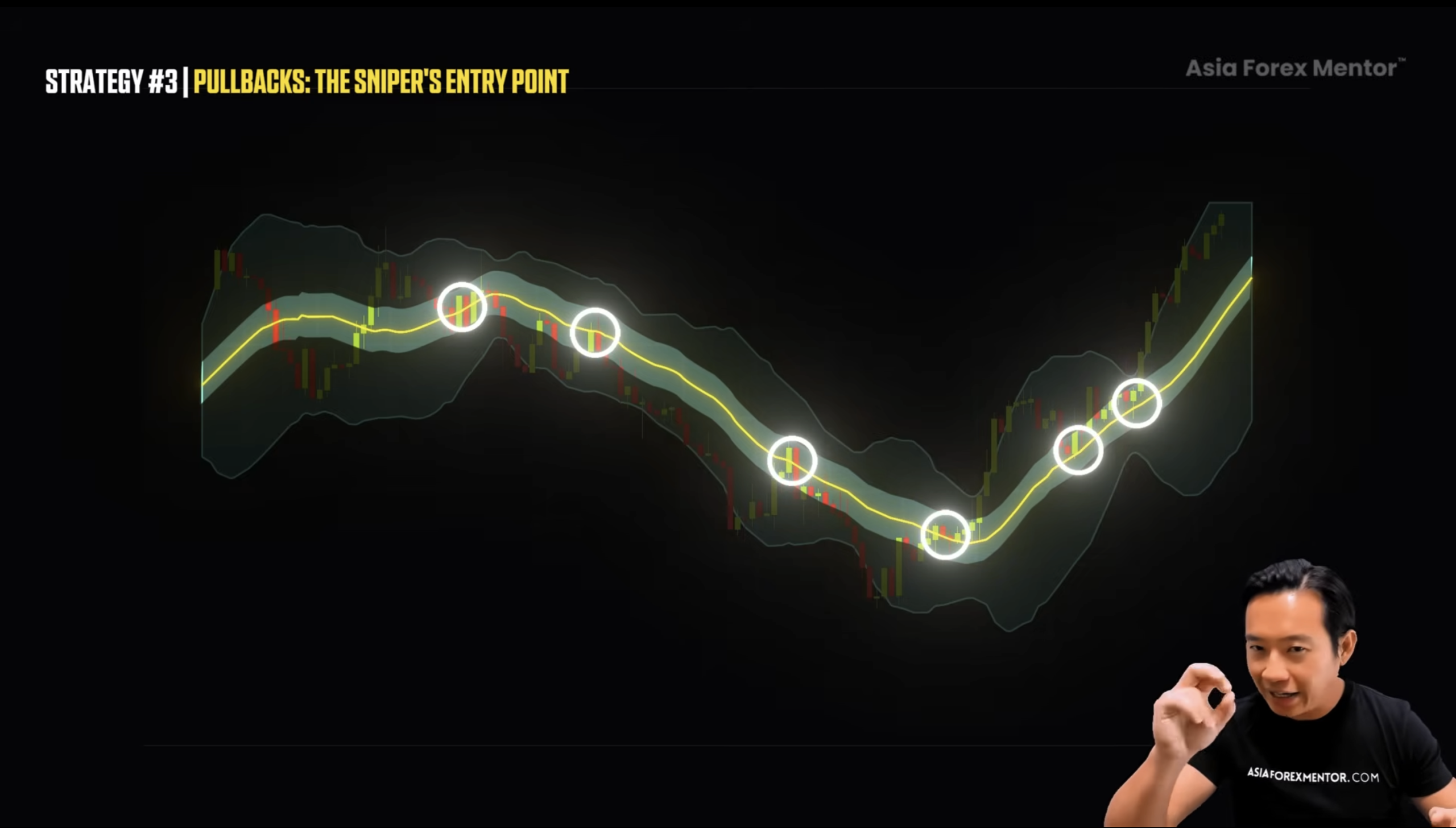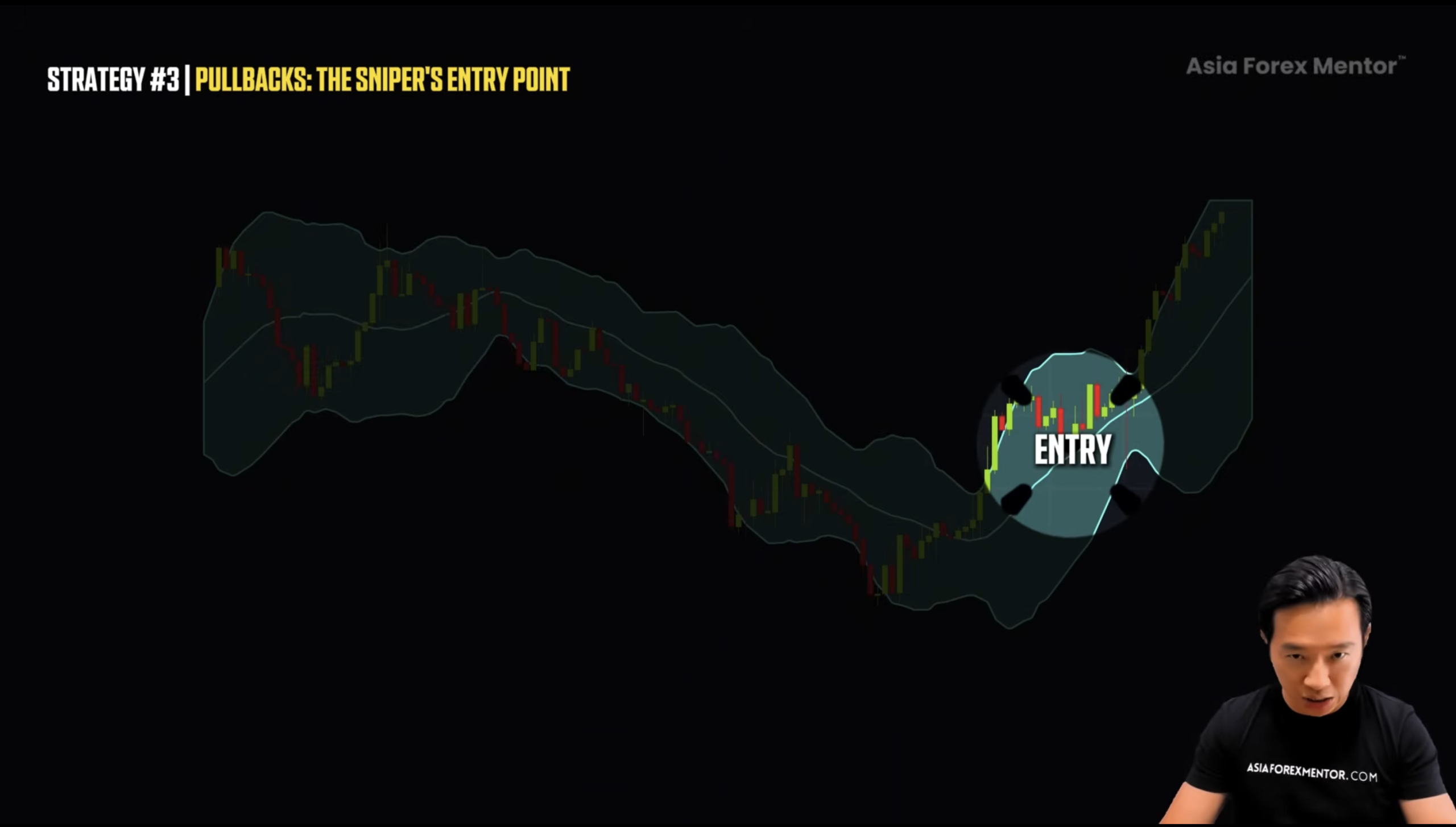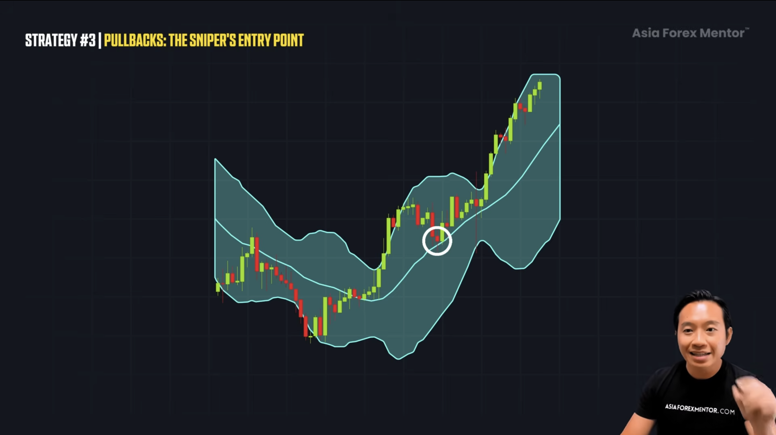 This pullback trade using the middle Bollinger Band becomes a precise area of value.