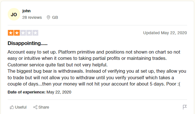 The two reviews above have fewer stars, while the last has four stars. In the first review, the first user mentioned that the platform has excellent customer care service. However, they are also dissatisfied with the company's volatility, stating that this platform is not for professional traders.