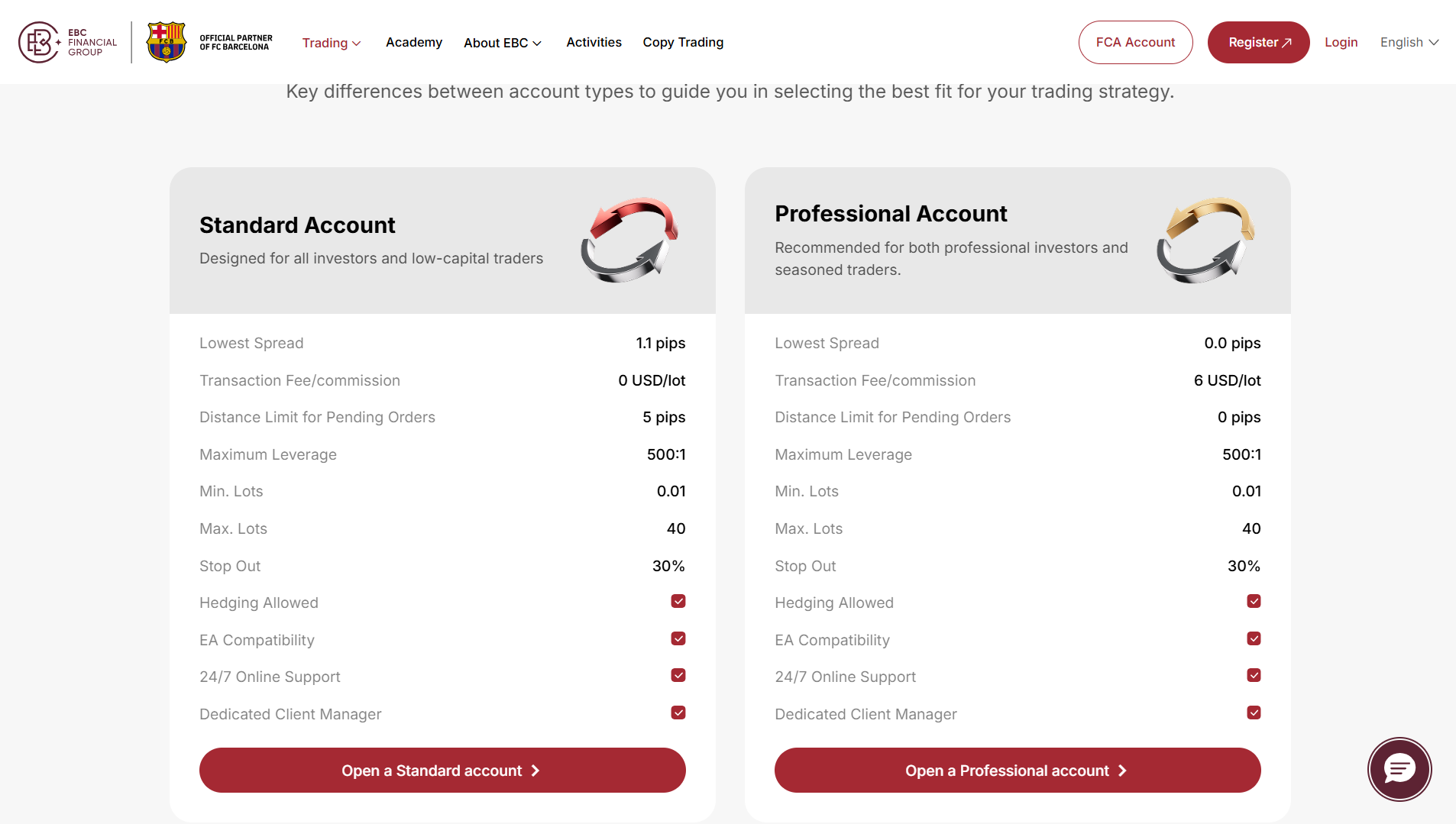 While RoboForex offers a wider range of account types and access to more than 12,000 instruments, EBC Financial Group emphasizes strong regulation with entities like the FCA and CIMA. RoboForex provides high leverage and a broader selection of trading assets, but EBC offers clearer pricing with access to institutional liquidity providers and an attractive spreads structure that suits traders looking for low-cost trading in a highly regulated environment.