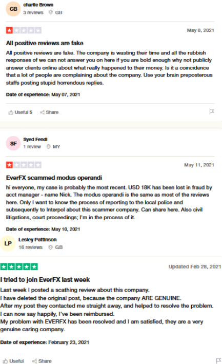 EVERFX highlights mixed feedback from traders who have used the broker's services in the trading central. Many traders appreciate the range of account options, which cater to both beginners and experienced investors. They also commend the platform's intuitive interface, making navigation and trading relatively straightforward.