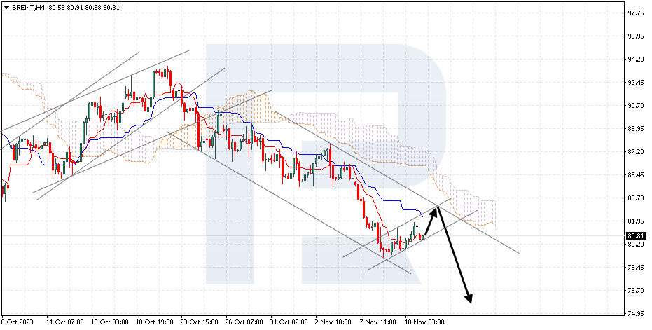 Brent is testing the signal lines of the indicator. The instrument is going below the Ichimoku Cloud, which suggests a downtrend. A test of the Kijun-Sen line at 82.00 is expected, followed by a decline to 75.25. An additional signal confirming the decline will be a rebound from the upper boundary of the bearish channel. The scenario can be cancelled by a breakout of the upper boundary of the Cloud with the price securing above 89.45, which will mean further growth to 90.65. Meanwhile, the decline could be confirmed by a breakout of the lower boundary of the bullish channel with the price securing under 79.55.