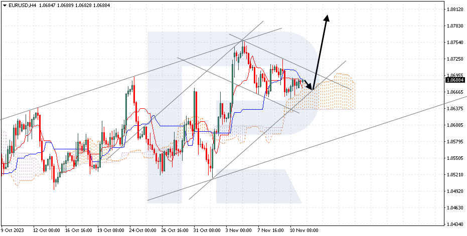 EURUSD is rebounding from the support level. The instrument is going above the Ichimoku Cloud, which suggests an uptrend. A test of the upper boundary of the Cloud at 1.0675 is expected, followed by a rise to 1.0815. An additional signal confirming the rise will be a rebound from the lower boundary of the ascending channel. The scenario can be cancelled by a breakout of the lower boundary of the Cloud with the price finding a foothold under 1.0625, which will mean a further decline to 1.0535. Meanwhile, the growth could be confirmed by a breakout of the upper boundary of the descending channel with the price finding a foothold above 1.0720.