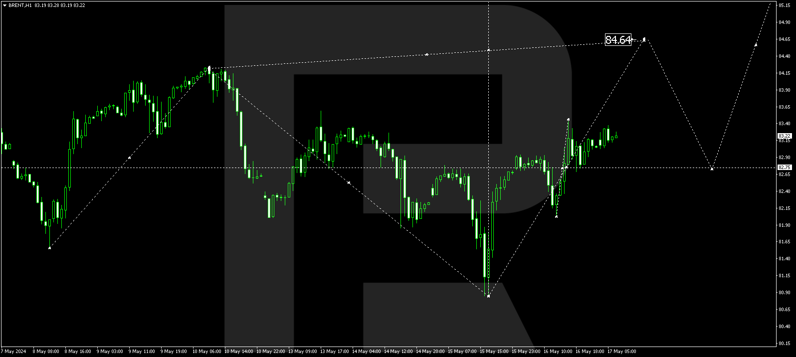 Brent has formed a consolidation range around 82.75. An upward breakout will open the potential for a wave towards 84.64. After reaching this level, the price could correct towards 82.75 (testing from above), subsequently rising to the local target of 86.40.