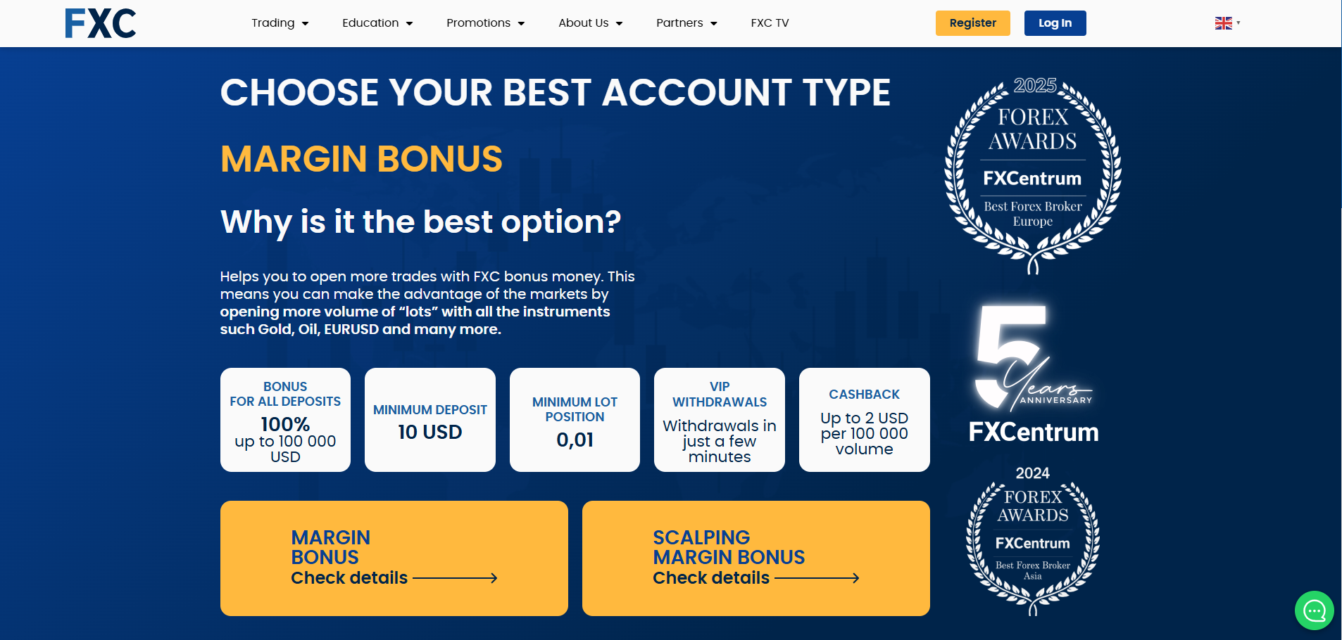 What is FXCentrum? FXCentrum is an online Forex and CFD broker that offers access to more than 2,200 trading instruments, including forex pairs, stocks, indices, commodities, metals, and cryptocurrencies. Traders use the proprietary FXC Trader platform, which is available on desktop and mobile devices. What is the minimum deposit and leverage at FXCentrum? The minimum deposit at FXCentrum starts from $10, making it accessible for new traders. The broker offers leverage of up to 1:1000, allowing traders to open larger positions with smaller amounts of capital. Does FXCentrum offer demo accounts? Yes, FXCentrum provides both a standard demo account and a demo-real account. These options allow traders to practice strategies without risk, with the demo-real account offering the ability to transfer profits to a live account after the trial period.
