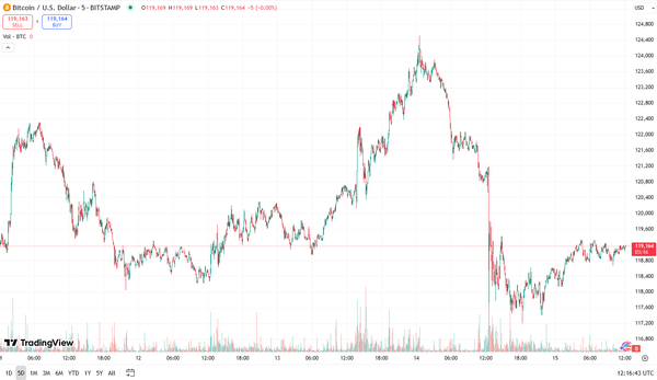 BTC/USD 5-Day Chart as of August 15th, 2025 (Source: TradingView)