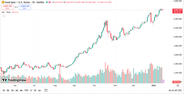 XAU/USD Daily Chart as of January 16, 2026 (Source: TradingView)