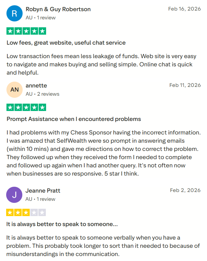 Customer feedback for Selfwealth is generally positive, with many users highlighting the platform’s simple interface, transparent pricing, and ease of trading as key strengths. Investors often mention that the flat brokerage fee structure makes costs predictable, which is especially appealing for long-term portfolio management. Reviews frequently describe the platform as straightforward to use for buying and holding shares, with clear navigation and an overall user-friendly experience suitable for both newer and experienced investors.