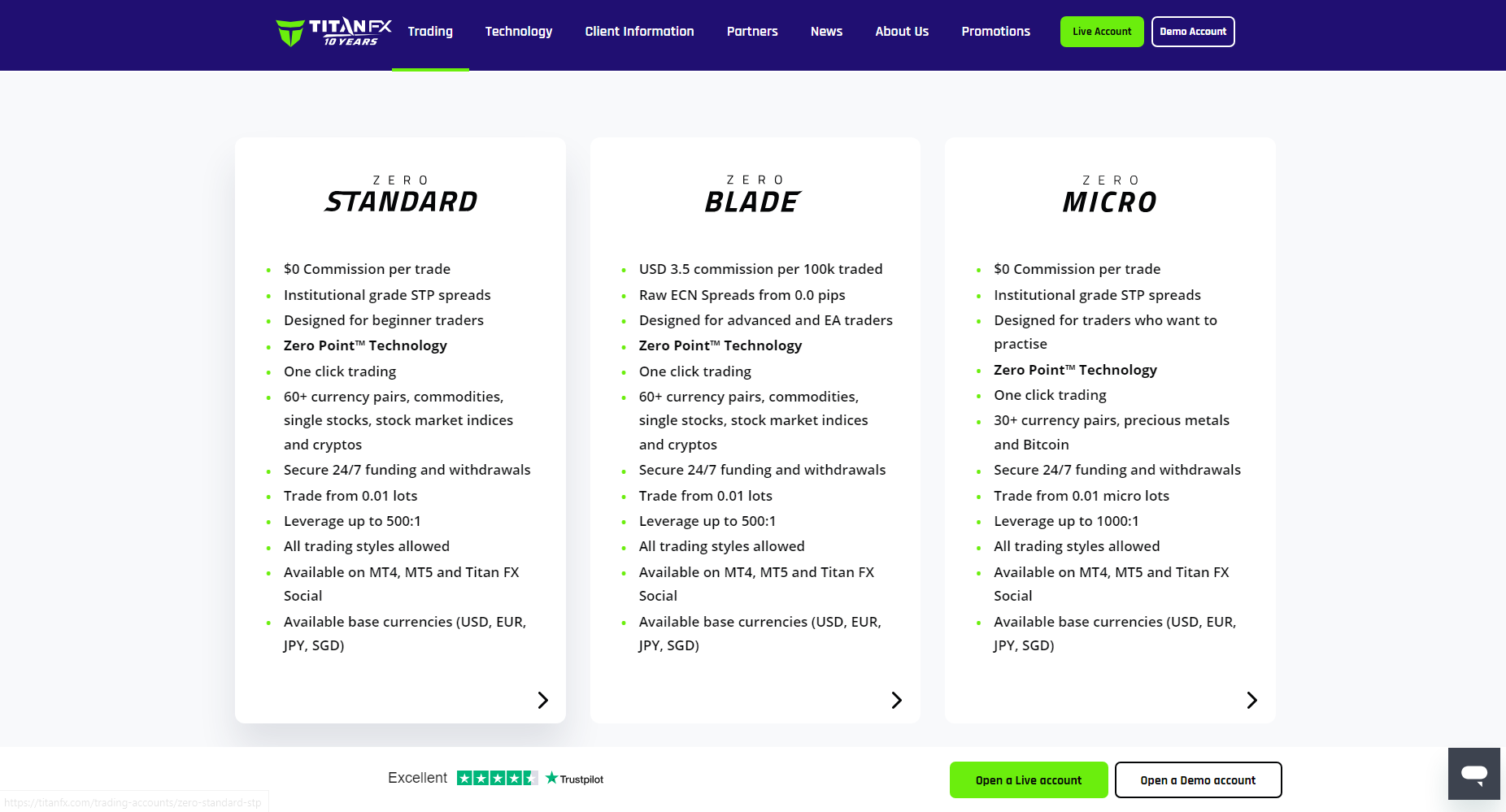 Titan FX introduced the Zero Micro Account on February 27, 2023, to cater to traders seeking smaller contract sizes and higher leverage. This account type allows trading with micro lots, starting from 0.01 lots, and offers leverage up to 1,000:1, enabling traders to manage risk effectively with a smaller initial investment.