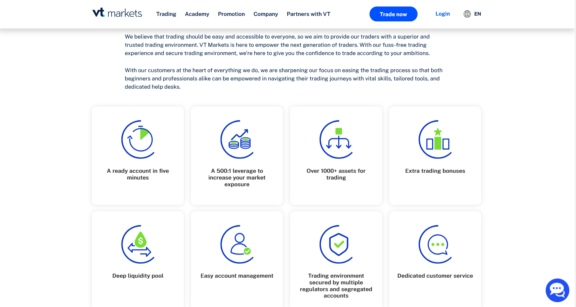 VT Markets is a global financial markets broker that provides access to a wide variety of financial trading instrument, such as forex, indices, commodities, precious metals, shares, and ETFs.